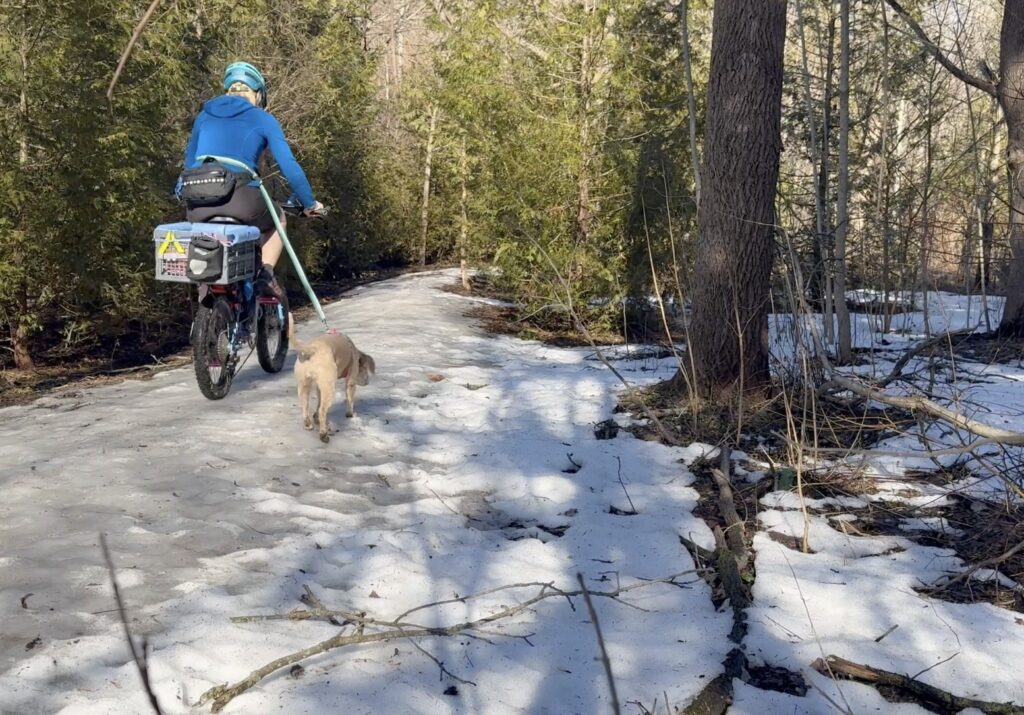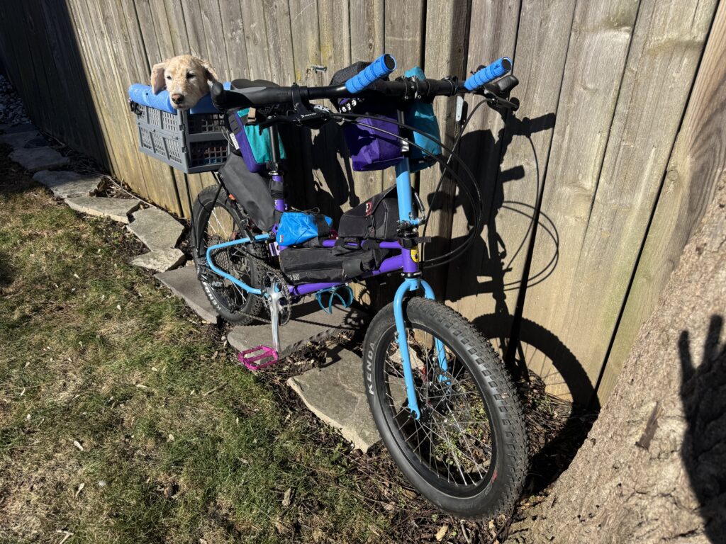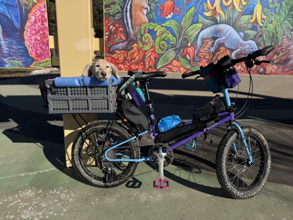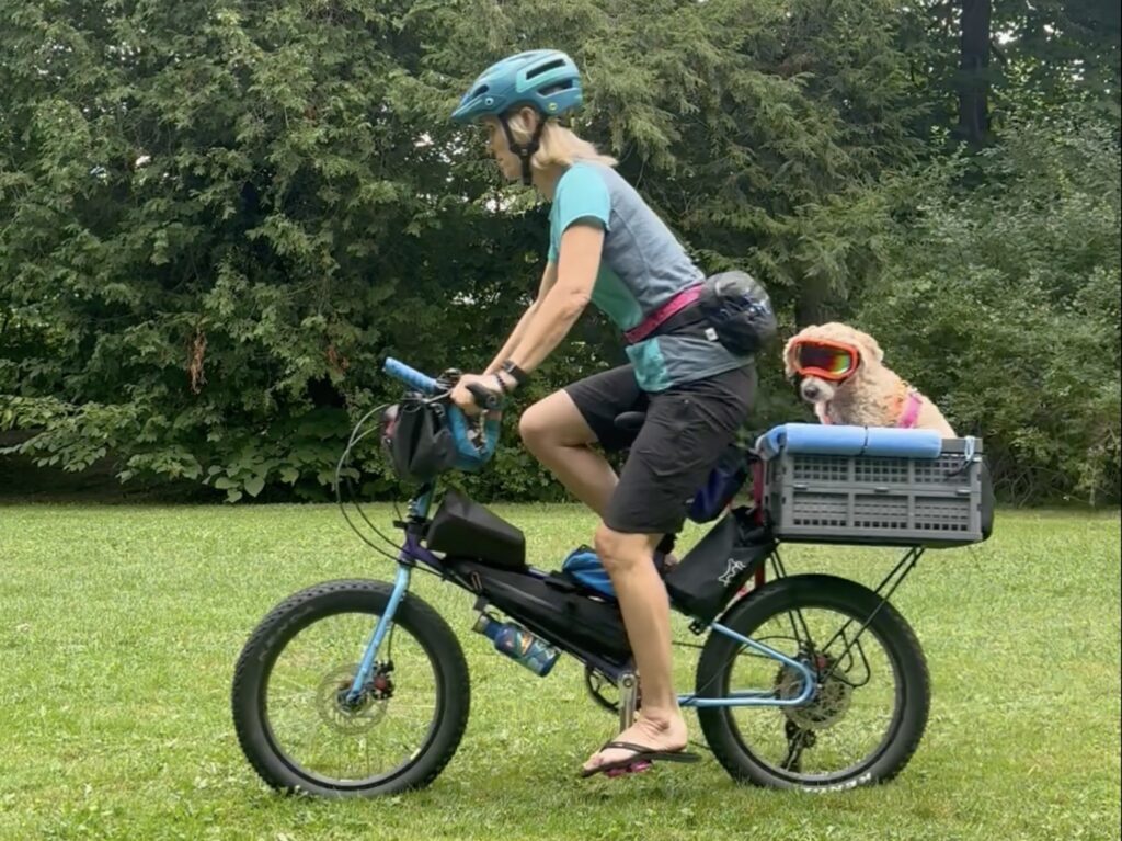 River and I love riding our All-Packa. It’s a smooth, stable, comfortable experience and a fabulous dogpacking bike for mixed terrain and off-road adventures. I don’t miss ‘standard-size’ bikes at all.