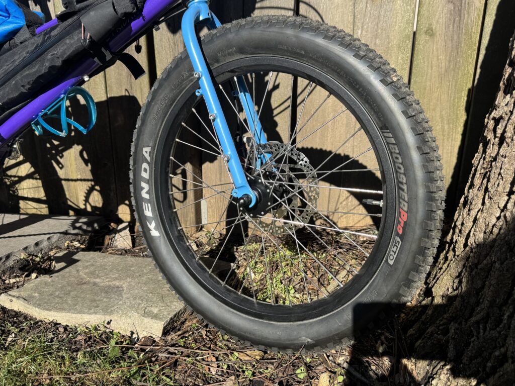 We’ve ridden with ease on wood chip paths, gravel rail-trails, mud, grass, pavement, patches of snow, and even through deep (10-cm) puddles.