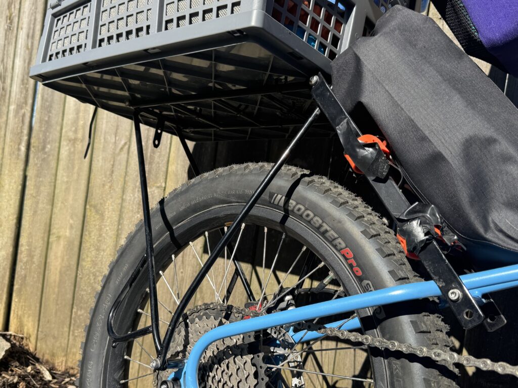- Rear rack diagonal strut: fork bag, attached using Voile straps