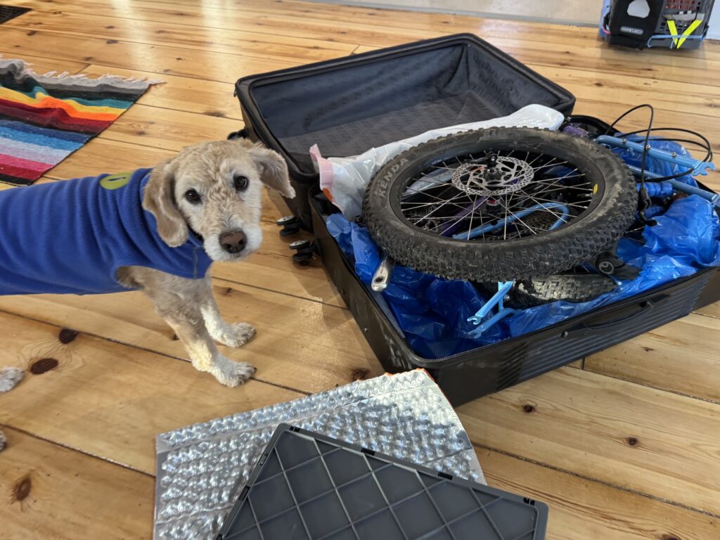 My dog and I were looking for a folding bike small enough for airplane travel but burly enough to tackle off-road and mixed terrain rides. Along came our All-Packa. We bought it a year ago, and here’s our overview of its use and performance for our dogpacking adventures: the Dog-Packa!